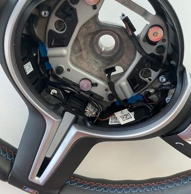Volan piele M Sport BMW X5 F15/M F85/X6 F16/M F86 cu padele ,vibratii,incalzire , pilot automat, fara airbag .